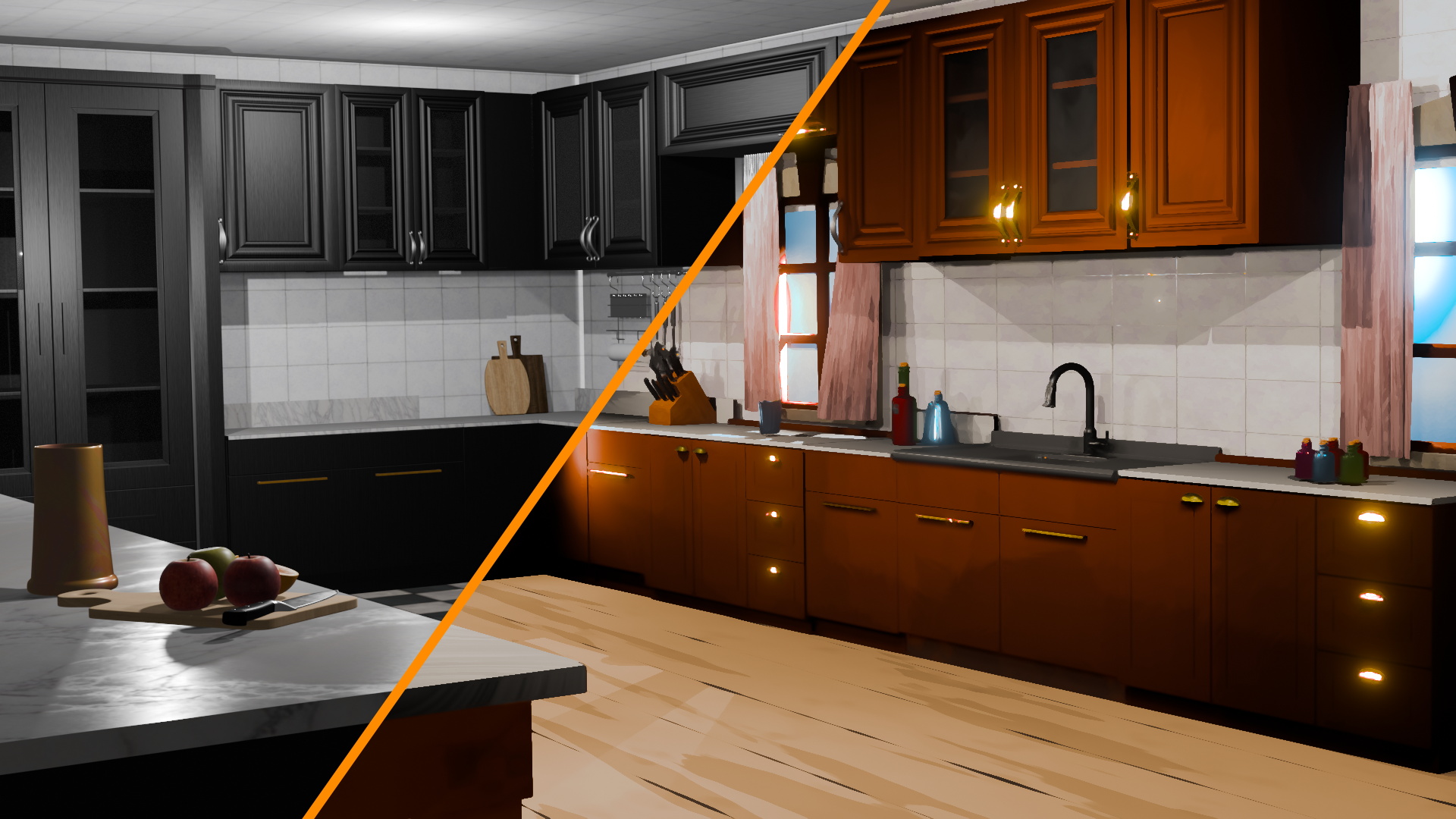 As for the kitchen, I had to completely rethink it. I really liked the original design, but it was essentially a modern kitchen inside a medieval fantasy manor, which felt completely out of place. I reworked both the lighting and shaders to better match the manor’s overall atmosphere.